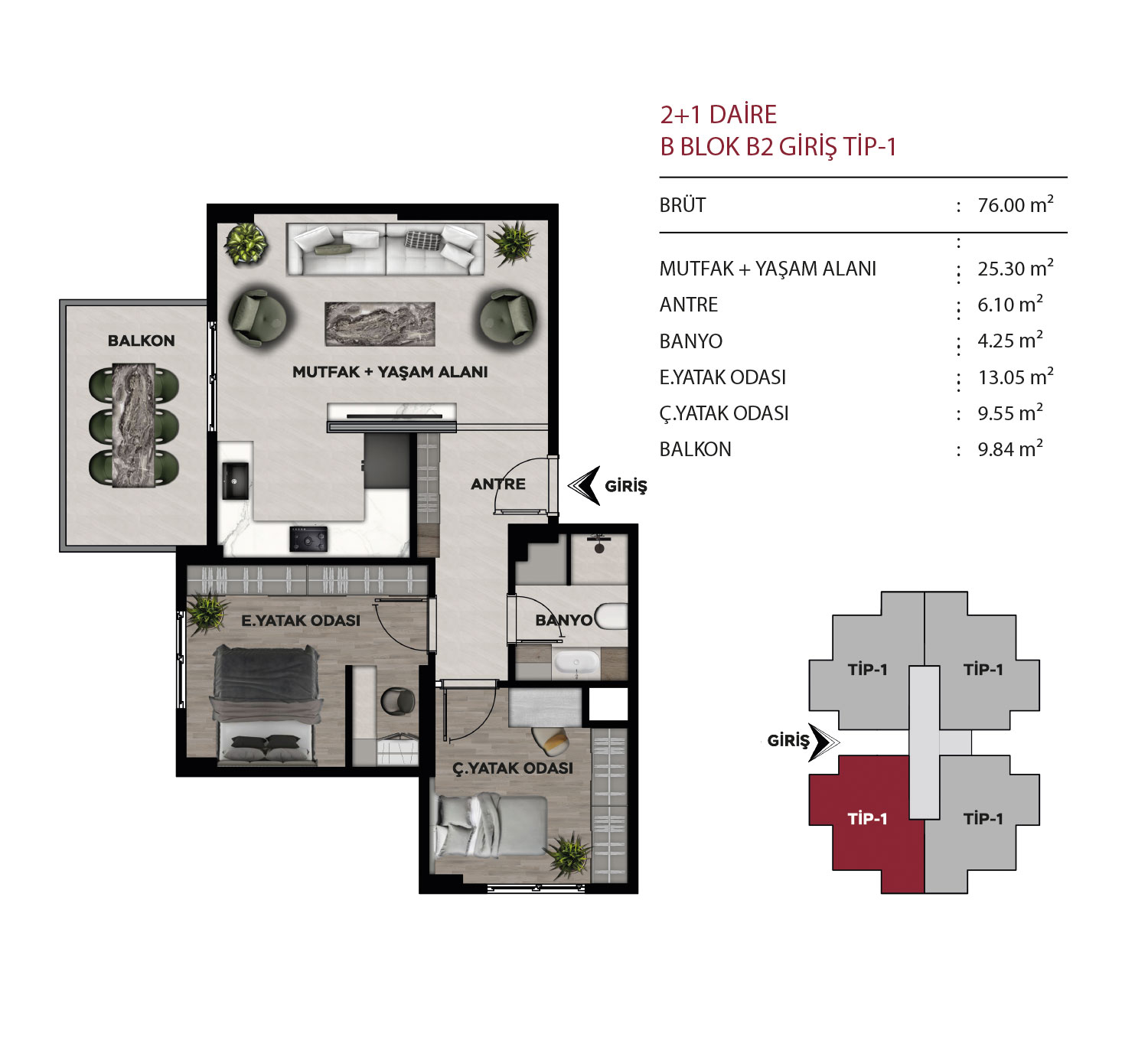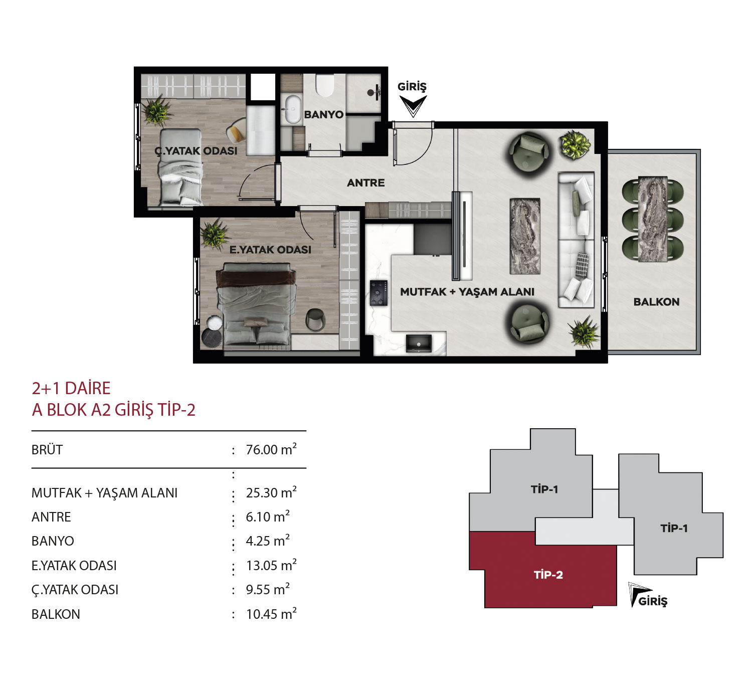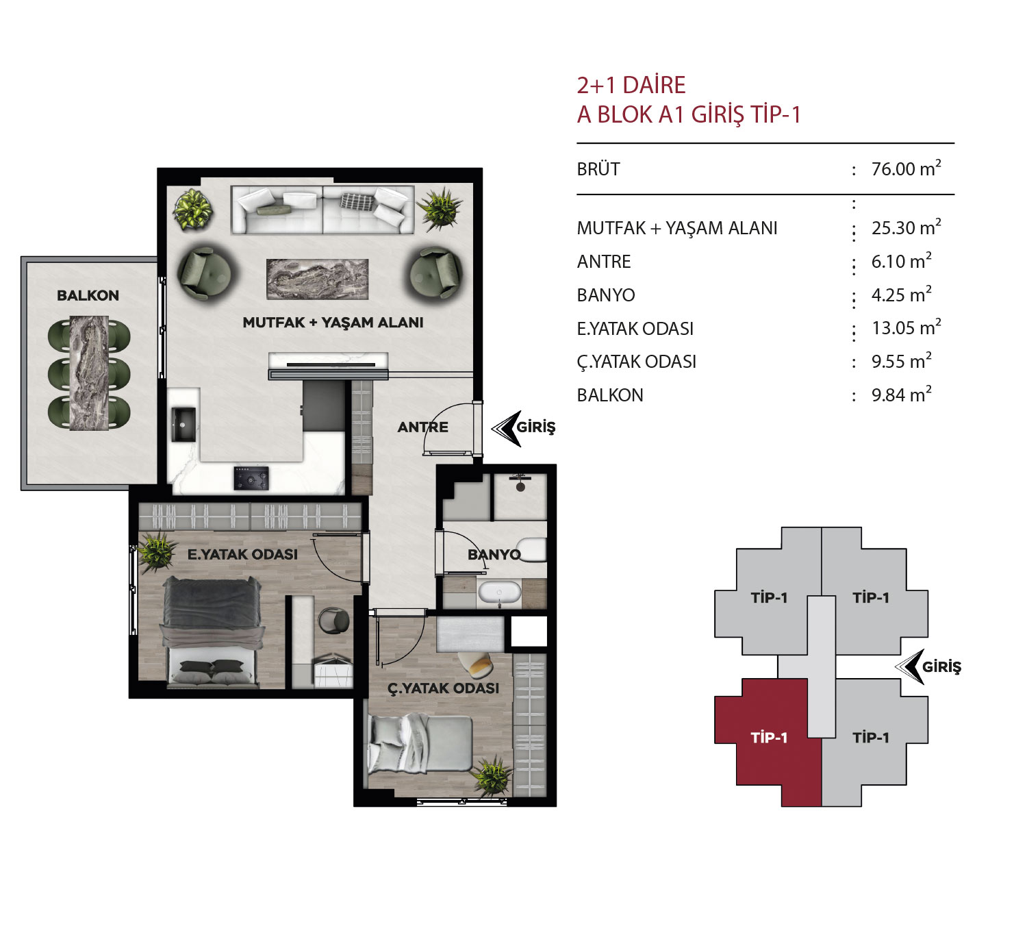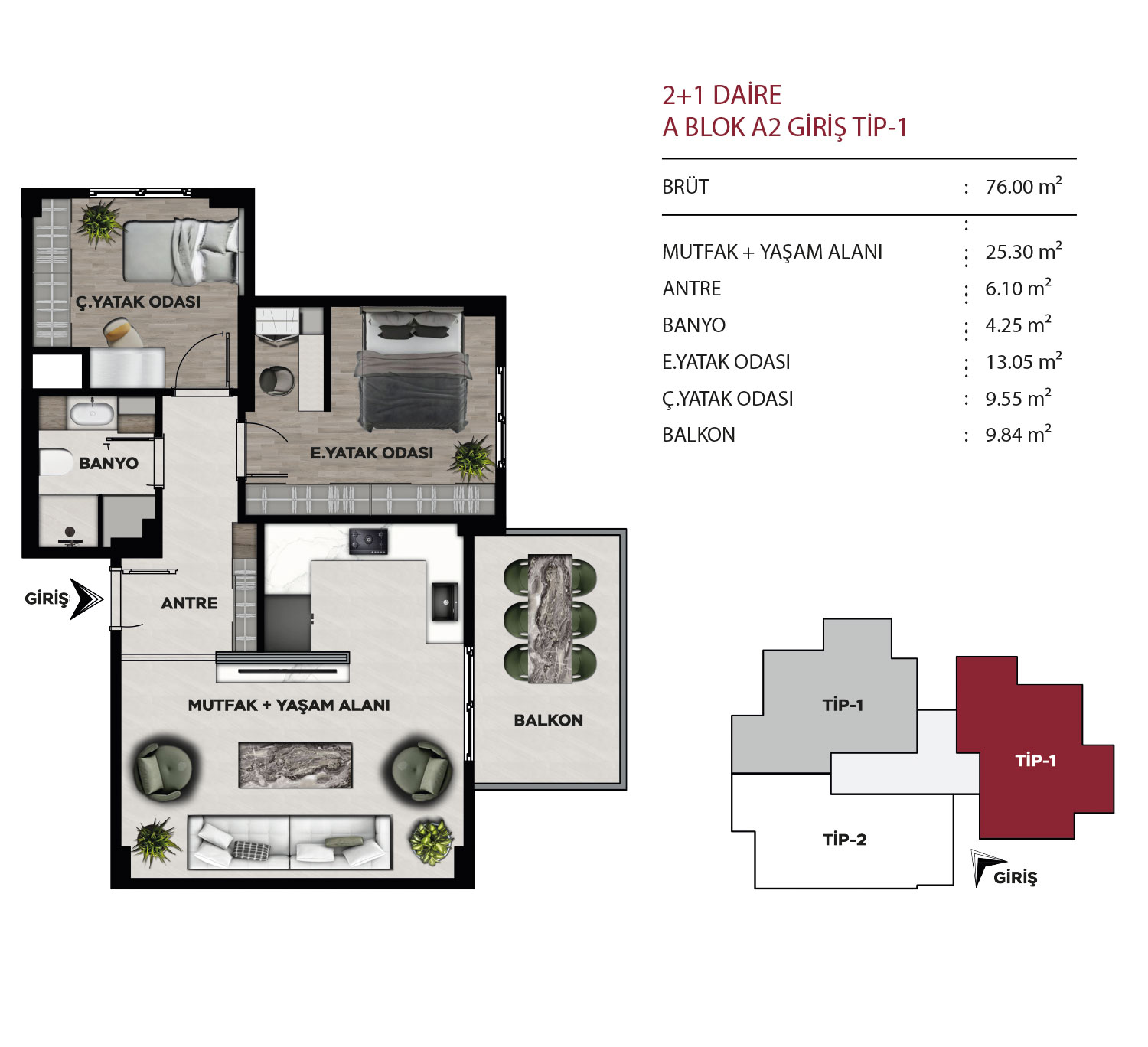 Doğayla uyumlu mimarisi ve özenle planlanmış yaşam alanlarıyla bu özel proje, şehir hayatının içinde sakin ve konforlu bir yaşam sunuyor.